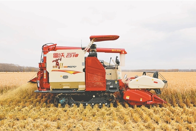 無人駕駛農(nóng)機助力北大荒水稻收獲作業(yè)