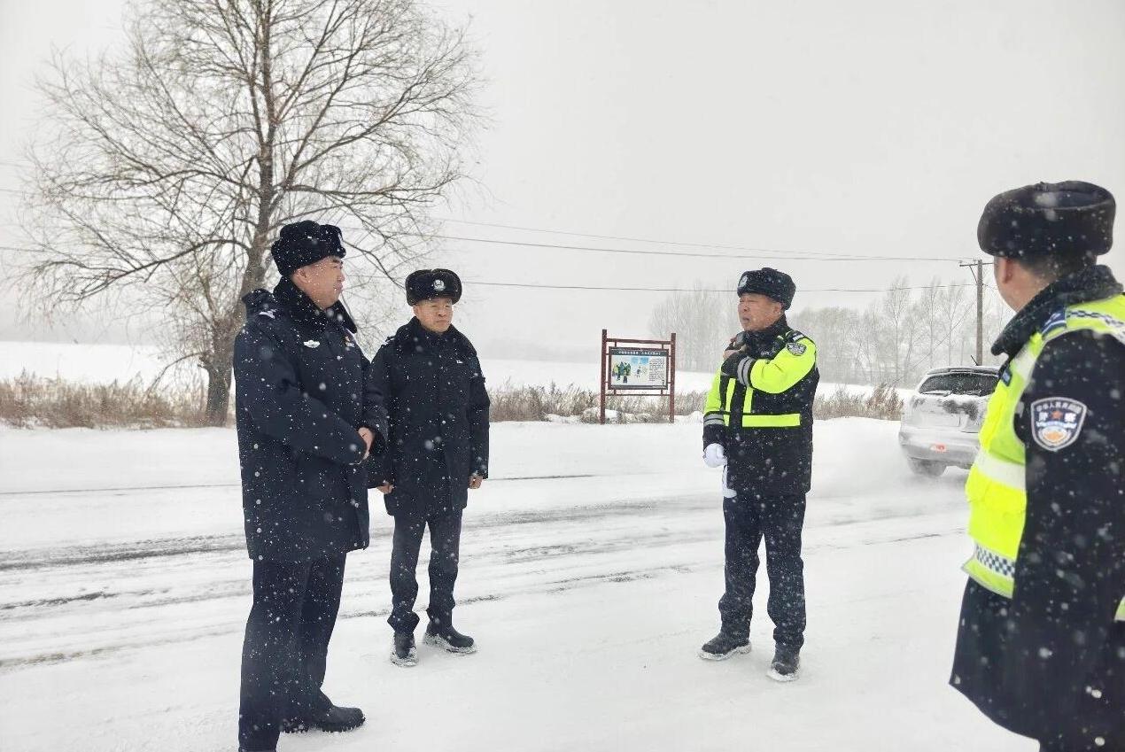 五大連池市公安局領(lǐng)導深入一線督導強降雪天氣道路交通安全管理工作