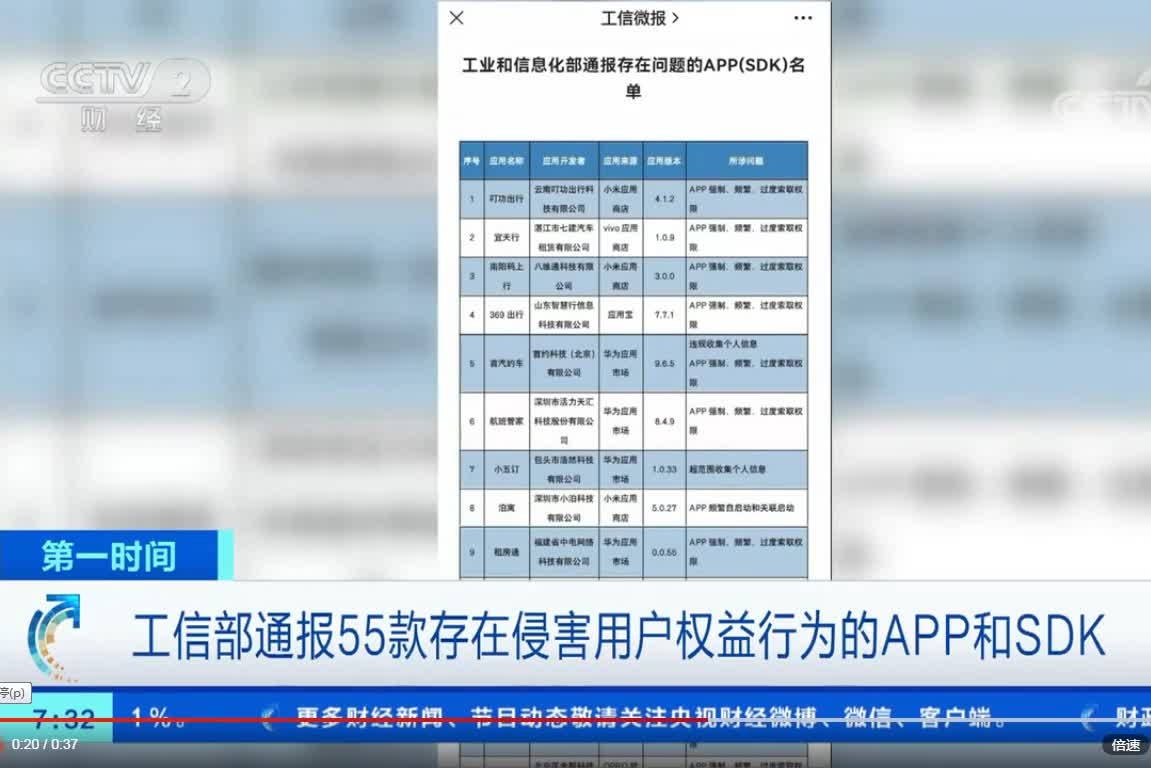 工信部通報55款存在侵害用戶權益行為的APP和SDK