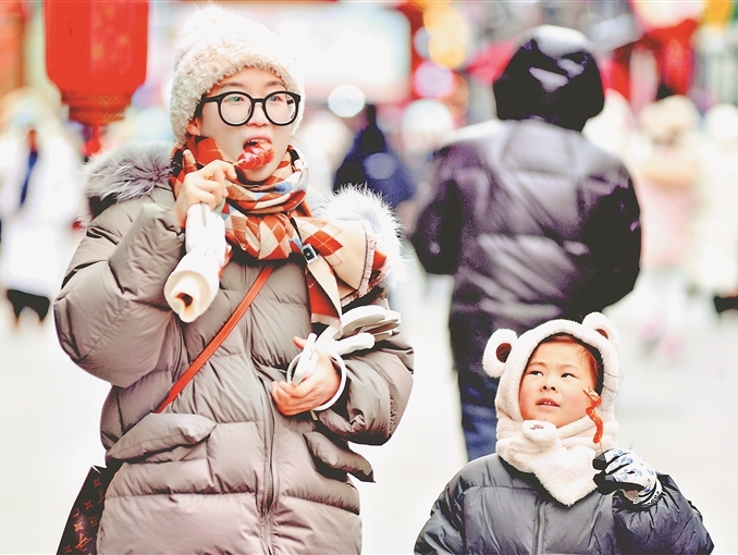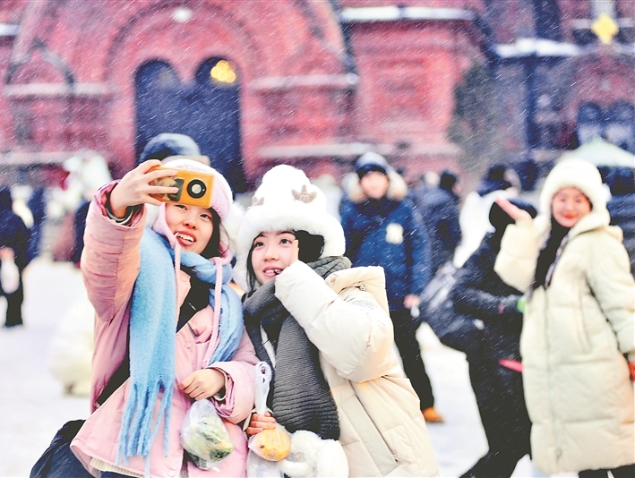 雪花飄飛 游客興致更濃