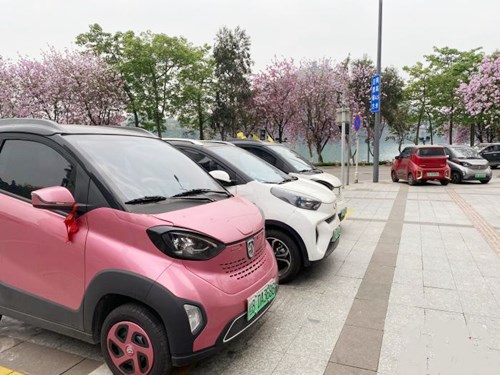 在柳州市區(qū)街道上,精致小巧的新能源汽車隨處可見(jiàn)。 周瀟男 攝