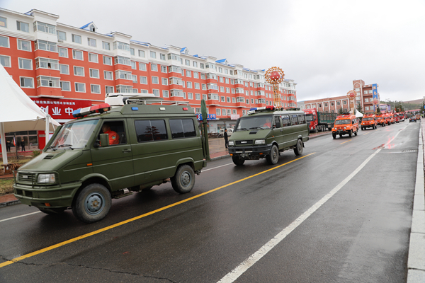 9時(shí),反思活動(dòng)正式開始。林業(yè)局處級領(lǐng)導(dǎo)與職工群眾鄭重地在在“牢記歷史 汲取教訓(xùn) 振奮精神 開拓進(jìn)取 建設(shè)美麗藍(lán)莓小鎮(zhèn)”宣傳條幅上,鄭重地簽上了自己的名字。并舉行了聲勢浩大的人員游行、車輛游行。由運(yùn)兵車、運(yùn)兵車、人工增雨車等26臺(tái)特種車輛,拉響警報(bào),緊跟在由森林消防大隊(duì)組成的100余人步行方陣后,他們身穿防火戰(zhàn)斗服,手舉寫有“‘五?六’反思”巨型防火宣傳牌和防火宣傳彩旗,尤其是手執(zhí)高速渦流噴射滅火機(jī)、脈沖槍、斯蒂爾風(fēng)力滅火機(jī)的隊(duì)員,邁著整齊的步伐,喊著響亮的口號,立即吸引了過往的居民的注意,成為最亮眼的“明星”。