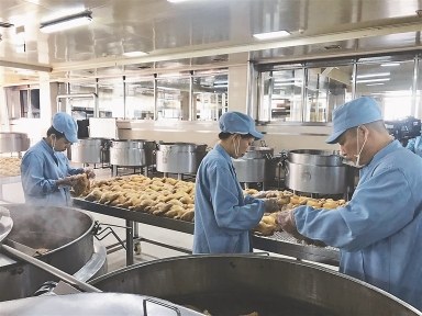 我省知名老字號裕昌燒雞生產(chǎn)線。
