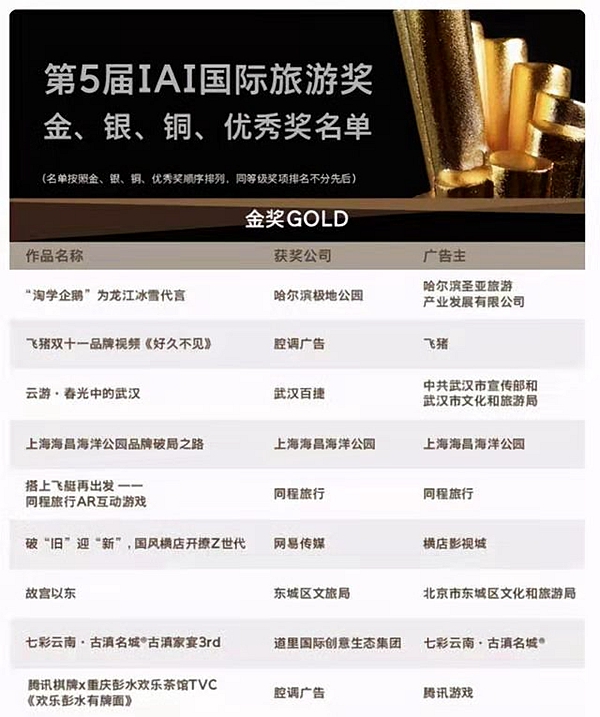 據(jù)了解,IAI國(guó)際旅游獎(jiǎng)是知名的綜合性廣告與品牌營(yíng)銷賽事評(píng)選,是國(guó)際化的旅游營(yíng)銷及行業(yè)運(yùn)營(yíng)評(píng)選活動(dòng)。國(guó)內(nèi)眾多營(yíng)銷及廣告類重量級(jí)機(jī)構(gòu)參與角逐,此次組委會(huì)共收到779家公司報(bào)送的3083件作品及案例,由270多位來自各領(lǐng)域的專家組成的終審團(tuán)進(jìn)行評(píng)審。