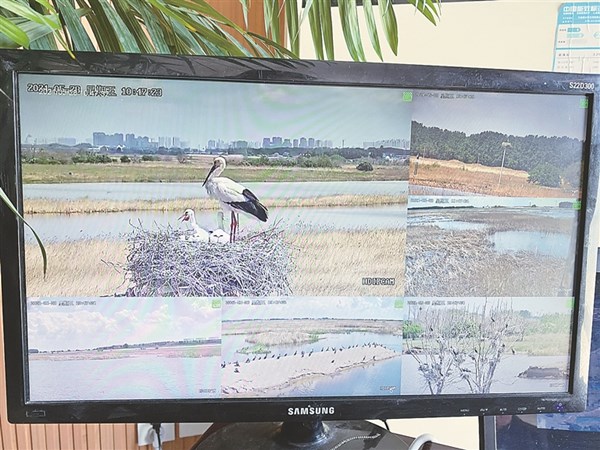 這幾天,黑龍江睿濤環(huán)??萍加邢薰巨k公室主任王東升總是去鳥類監(jiān)測平臺看來到百鳥湖景區(qū)“安家”的東方白鸛一家。起初,是一對東方白鸛來到這里筑巢。5月中旬,王東升在監(jiān)測平臺的顯示器里驚喜地發(fā)現(xiàn),這對東方白鸛孵化出了5只寶寶。