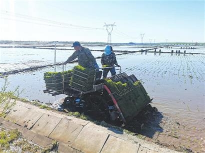 坤站村稻豐糧食種植農(nóng)民專業(yè)合作社理事長楊軍介紹,受氣溫影響,今年插秧比往年延遲一周左右,為了把時(shí)間搶回來,合作社社員起早貪黑,從早晨四點(diǎn)多就開始插秧。合作社今年種植水稻面積3000多畝,為抗低溫、保全苗、奪高產(chǎn),全部采用機(jī)械化插秧,一臺(tái)插秧機(jī)每天可插秧50畝。楊軍說,去年建設(shè)的水稻公園成為游客網(wǎng)紅打卡地,今年在稻田公園新設(shè)計(jì)一個(gè)慶祝建黨100周年和鄉(xiāng)村振興的彩繪圖案,助力鄉(xiāng)村旅游業(yè)發(fā)展。