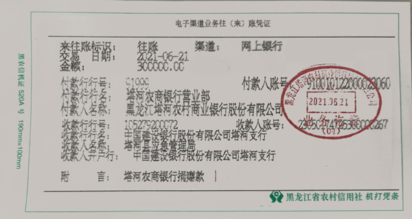 為更好地支持塔河縣應(yīng)對(duì)汛情,戰(zhàn)勝洪災(zāi), 6月21日,塔河農(nóng)商銀行在上級(jí)銀行的大力支持下,簡(jiǎn)化手續(xù),特事特辦,第一時(shí)間向塔河縣人民政府捐贈(zèng)救災(zāi)款項(xiàng)30萬(wàn)元,用于塔河縣抗洪救災(zāi)工作,奉獻(xiàn)了農(nóng)商銀行廣大干部職工的一份愛心。