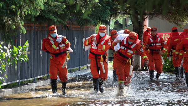 18日凌晨,記者在位于塔河鎮(zhèn)中央大街東端的塔河農(nóng)商銀行機(jī)關(guān)辦公樓前看到,漲勢(shì)很快的洪水正迅猛地漫過中央大街,向街邊的農(nóng)商銀行機(jī)關(guān)大樓、稅務(wù)局辦公樓和電視臺(tái)辦公樓等處涌來(lái),而這幾個(gè)沿街單位地勢(shì)較低,很容易受到洪水的侵襲。為盡量控制洪水水勢(shì),最大限度減少洪水造成的損失,塔河縣防指迅速調(diào)集人力物力,主要領(lǐng)導(dǎo)靠前指揮,廣大救援官兵奮勇爭(zhēng)先,在幾個(gè)臨街單位外圍用沙袋圍壩攔堵,并調(diào)動(dòng)多臺(tái)高壓水泵抽水抗?jié)?,給幾個(gè)單位的救援提供了極大地助力,也為其自救創(chuàng)造了更多的時(shí)機(jī)。
