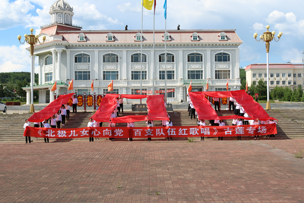 開(kāi)展“高歌頌黨恩 永遠(yuǎn)跟黨走”唱紅歌活動(dòng)。在生產(chǎn)一線、機(jī)關(guān)科室的400多名黨員干部、職工群眾用百米長(zhǎng)幅歌頌黨、感謝黨,齊聲高唱《沒(méi)有共產(chǎn)黨就沒(méi)有新中國(guó)》《歌唱祖國(guó)》,激情嘹亮的歌聲唱出了對(duì)中國(guó)共產(chǎn)黨的熱愛(ài)和禮贊。全體隊(duì)員還用黨旗和紅綢擺出了100的造型,以特殊的方式向建黨100周年獻(xiàn)禮,充分展現(xiàn)了新時(shí)代林區(qū)礦山人愛(ài)黨愛(ài)國(guó)的精神風(fēng)貌。