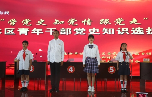 在比賽前,黨員代表帶領(lǐng)青年黨員重溫了入黨誓詞,團(tuán)員代表帶領(lǐng)團(tuán)員重溫了入團(tuán)誓詞,新林一小少先隊(duì)員代表、新林二中團(tuán)員代表為建黨100周年獻(xiàn)詞。