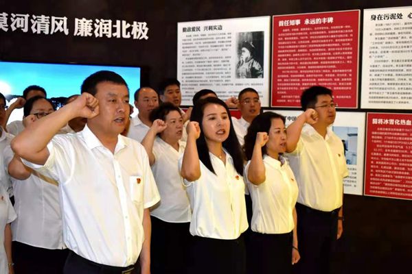 在漠河市廉政教育基地,塔河林業(yè)局研學(xué)交流團成員在講解員生動的講解下,依次參觀了“以古鑒今 廉潔中華”、“正風(fēng)肅紀 馳而不息”、“前車之鑒 警鐘常鳴”、“清正為民 廉潔風(fēng)范”四個篇章。通過一個個觸目驚心的腐敗案例、一幅幅發(fā)人深省的圖片和當(dāng)事人的懺悔實況錄像,對現(xiàn)場每一個人給以強烈的心靈震撼,進一步提高了大家對反腐倡廉重大意義的認識和感悟,筑牢防腐拒變思想防線。在深受警示教育的同時,研學(xué)交流團全體黨員干部高舉右拳,面對黨旗莊嚴宣誓,重溫入黨誓詞,并在“廉潔宣誓化于心,廉潔承諾重于行”橫幅上鄭重簽下自己的名字,表達了一定要樹牢不忘初心、勇?lián)姑?、廉潔從政的信念和決心。