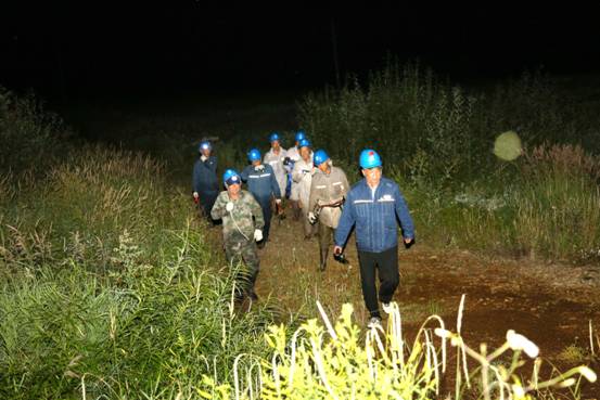 呼中輸電運(yùn)檢班組班長修春陽帶著班組走到公路時(shí)已近深夜,修春陽介紹說:“接到報(bào)損坐標(biāo)后,我們班組迅速到達(dá)坐標(biāo)最近公路處,當(dāng)時(shí)已是19時(shí)許,進(jìn)山時(shí)帶著幾塊月餅和水,天還亮著走了1個(gè)多小時(shí),回來時(shí)天已經(jīng)黑透了,路上有密林、塔頭墩和近腰深的水路,走了2個(gè)多小時(shí)?!?/span>