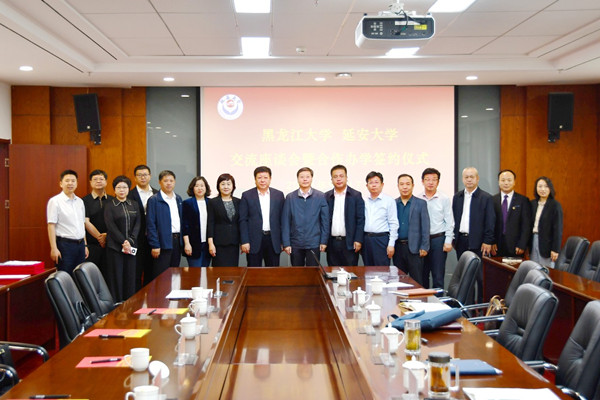 王永清書記介紹了黑龍江大學(xué)的總體辦學(xué)情況,指出黑大與延安大學(xué)同根同源,是中國共產(chǎn)黨在延安時期親手創(chuàng)辦的紅色大學(xué),具有優(yōu)良的革命傳統(tǒng)和光輝的辦學(xué)歷程。此次學(xué)校本著優(yōu)勢互補、資源共享、平等互利、合作共贏的原則,與延安大學(xué)共同搭建合作平臺,希望雙方未來繼續(xù)發(fā)揮各自優(yōu)勢,在思想政治理論課建設(shè),研究生培養(yǎng),師資隊伍建設(shè),學(xué)術(shù)合作交流等方面開展務(wù)實合作,為更多學(xué)子提供學(xué)習(xí)平臺。