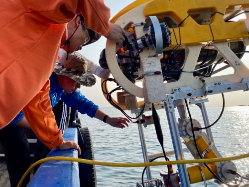 團(tuán)隊(duì)成員在海上進(jìn)行試驗(yàn)