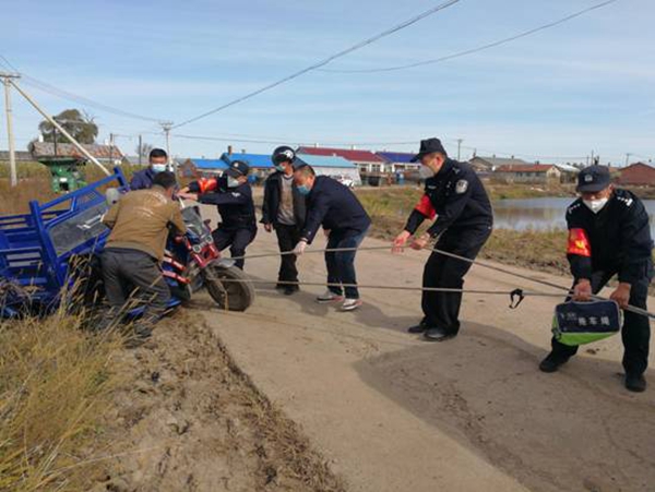 巴彥縣出現(xiàn)疫情后,哈爾濱市公安局航運(yùn)分局副局長(zhǎng)井立軍帶領(lǐng)41名來(lái)自航運(yùn)分局、地鐵分局、禁毒支隊(duì)的戰(zhàn)友們,在巴彥農(nóng)村疫情災(zāi)區(qū)走鄉(xiāng)鎮(zhèn)進(jìn)村屯、查卡點(diǎn)看秋收,用頑強(qiáng)的意志、過(guò)硬的膽識(shí),漂亮地打贏了一場(chǎng)巴彥農(nóng)村疫情防控阻擊戰(zhàn)。截至目前,哈爾濱市公安局駐巴彥農(nóng)村防疫工作組共協(xié)助維護(hù)核酸檢測(cè)點(diǎn)秩序3028處、檢查村屯卡點(diǎn)2015處、整改存在管理問題村屯卡點(diǎn)103處、整改存在安全隱患居家隔離點(diǎn)437戶,勸阻私自出門秋收等人員862人,監(jiān)督處置有害垃圾、病死牲畜等事件33起,為全面阻斷巴彥農(nóng)村疫情蔓延奠定了堅(jiān)實(shí)基礎(chǔ)。