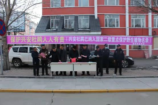會(huì)后,所有與會(huì)人員參加了由森林資源管理科舉辦的“保護(hù)野生興安杜鵑人人有責(zé)”宣傳活動(dòng),對(duì)快遞公司、山產(chǎn)品店、檢查站、配貨站、市場(chǎng)及過往車輛進(jìn)行宣傳,并呼吁經(jīng)營業(yè)主參與到保護(hù)野生興安杜鵑行動(dòng)中來,不收購、不運(yùn)輸、不銷售野生興安杜鵑,堅(jiān)決把牢物流運(yùn)輸關(guān)口。