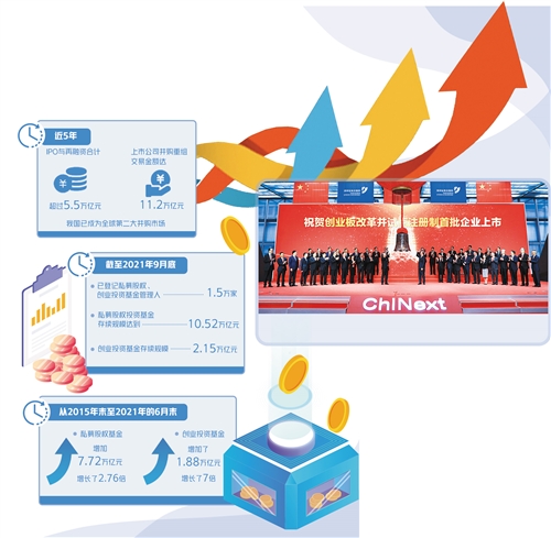 值得關(guān)注的是,私募股權(quán)和創(chuàng)投基金已成為直接融資的重要力量,在為投資者創(chuàng)造財(cái)富回報(bào)的同時,也對直接融資和實(shí)體經(jīng)濟(jì)具有重要的促進(jìn)作用。數(shù)據(jù)顯示,截至2021年9月底,已登記私募股權(quán)、創(chuàng)業(yè)投資基金管理人1.5萬家,私募股權(quán)投資基金存續(xù)規(guī)模達(dá)到10.52萬億元,創(chuàng)業(yè)投資基金存續(xù)規(guī)模2.15萬億元。從2015年末至2021年的6月末,私募股權(quán)基金增加7.72萬億元,增長了2.76倍。創(chuàng)業(yè)投資基金增加了1.88萬億元,增長了7倍。