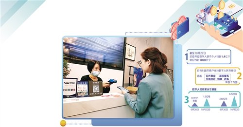 《中國(guó)數(shù)字人民幣的研發(fā)進(jìn)展白皮書》公布的數(shù)據(jù)顯示,截至今年6月30日,共開通個(gè)人錢包2087萬(wàn)余個(gè)。而最新數(shù)據(jù)顯示,截至10月22日,已經(jīng)開立數(shù)字人民幣個(gè)人錢包1.4億個(gè)。