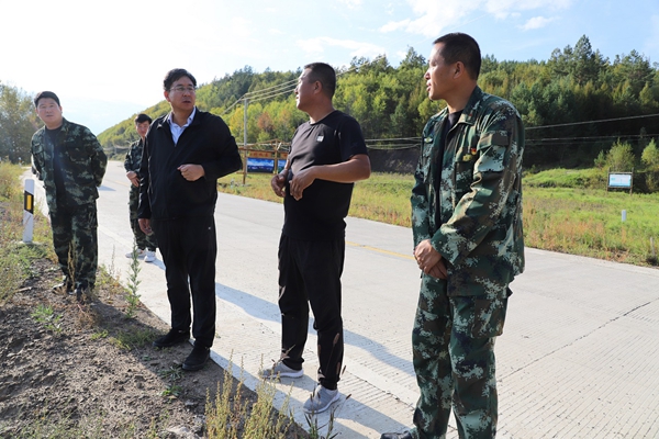 阿木爾林業(yè)局黨委副書記、局長韓鳳泉(右三)深入到龍河林場,檢查指導旅游產業(yè)工作(王力 攝)