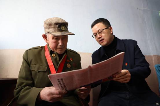 阿木爾林業(yè)局黨委委員、宣傳部部長(zhǎng)高樹源(右)走進(jìn)老黨員張俊峰家中,宣傳黨的十九屆六中全會(huì)精神(王力攝)