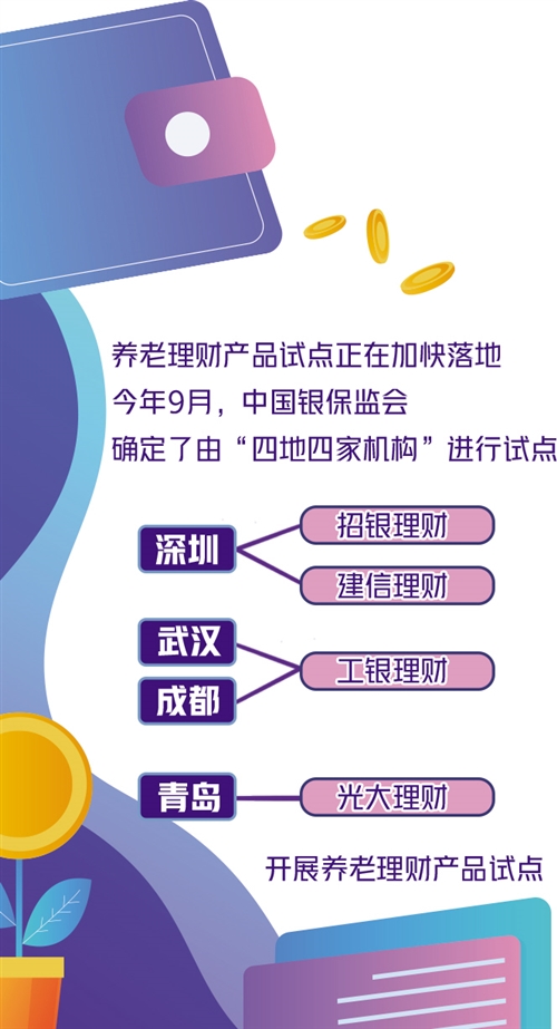 養(yǎng)老理財產(chǎn)品試點正在加快落地。今年9月,中國銀保監(jiān)會確定了由“四地四家機構”進行試點,即工銀理財在武漢和成都、建信理財和招銀理財在深圳、光大理財在青島開展養(yǎng)老理財產(chǎn)品試點。10月下旬,銀保監(jiān)會首席檢查官、辦公廳主任、新聞發(fā)言人王朝弟在國新辦發(fā)布會上透露,養(yǎng)老理財試點產(chǎn)品已進入報備階段,很快就會跟廣大消費者見面。