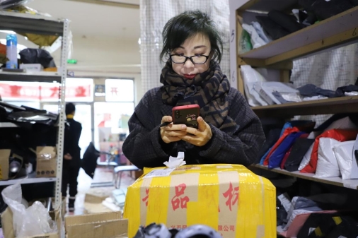 圖為共產(chǎn)黨員、網(wǎng)商孫秀麗正在為客戶(hù)發(fā)貨(王力攝)