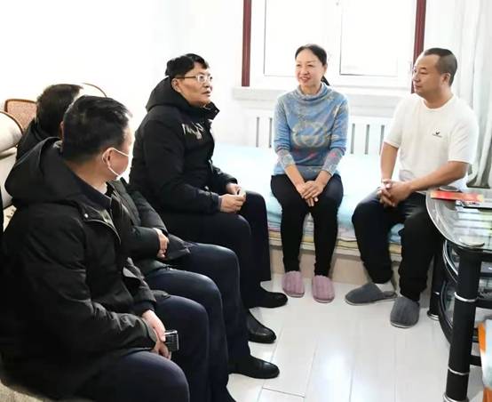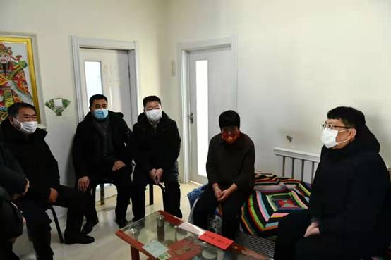 新林林業(yè)局黨委副書(shū)記、局長(zhǎng)張鶴松一行在困難職工劉玉峰家中走訪(fǎng)慰問(wèn)(趙文財(cái) 攝)