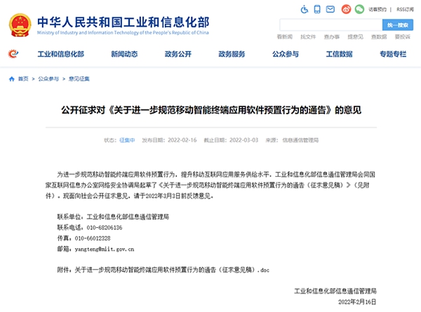 為進一步規(guī)范移動智能終端應(yīng)用軟件預(yù)置行為,提升移動互聯(lián)網(wǎng)應(yīng)用服務(wù)供給水平,構(gòu)建更加安全、更有活力的產(chǎn)業(yè)生態(tài),促進移動互聯(lián)網(wǎng)繁榮發(fā)展,根據(jù)《中華人民共和國網(wǎng)絡(luò)安全法》《中華人民共和國個人信息保護法》《中華人民共和國電信條例》和《移動智能終端應(yīng)用軟件預(yù)置和分發(fā)管理暫行規(guī)定》(工信部信管〔2016〕407號),現(xiàn)將有關(guān)事項通告如下: