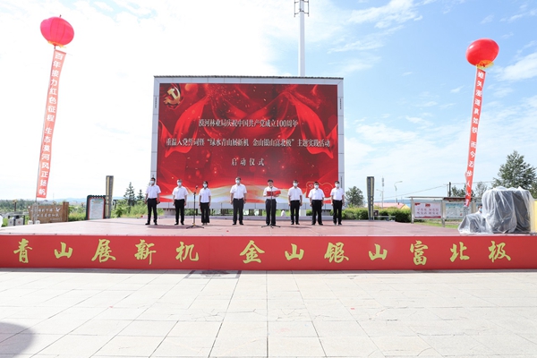 漠河林業(yè)局慶祝中國共產(chǎn)黨成立100周年重溫入黨誓詞暨“綠水青山展新機 金山銀山富北極”主題實踐活動啟動儀式(李雪原 攝)