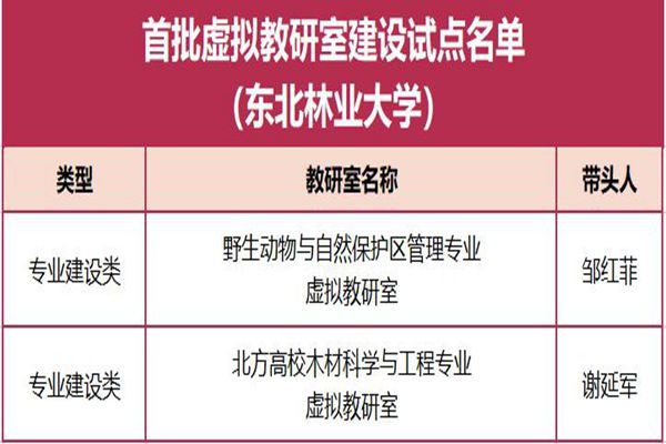 黑龍江經(jīng)濟(jì)網(wǎng)訊(黑龍江日?qǐng)?bào)全媒體見習(xí)記者董廣碩 商祺)近日,教育部公布了首批虛擬教研室建設(shè)試點(diǎn)名單,東北林業(yè)大學(xué)野生動(dòng)物與自然保護(hù)區(qū)管理專業(yè)虛擬教研室、北方高校木材科學(xué)與工程專業(yè)虛擬教研室獲批首批虛擬教研室建設(shè)試點(diǎn)。