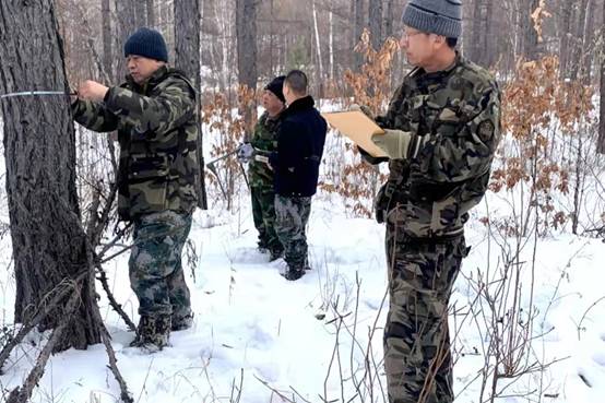 清晨,隊(duì)員們迎著初升太陽(yáng)進(jìn)山作業(yè);午間,大家坐在雪地上喝著涼水配著面包、饅頭、火腿腸、榨菜充饑;森林調(diào)查環(huán)境雖然艱苦,但沒(méi)有一個(gè)人叫苦叫累,工作一天下來(lái),隊(duì)員們的衣服和鞋都濕透了;傍晚,隊(duì)員們回到單位還要加班加點(diǎn)的統(tǒng)計(jì)匯總當(dāng)天的調(diào)查數(shù)據(jù),力爭(zhēng)用最短的時(shí)間完成森調(diào)任務(wù)。