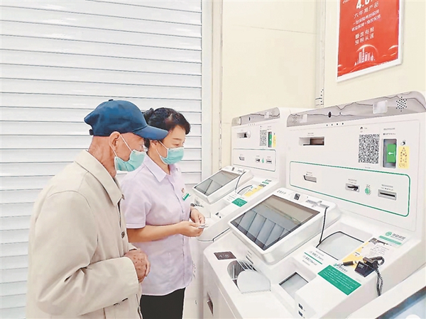銀行工作人員指導(dǎo)老年人辦理業(yè)務(wù)破解數(shù)字鴻溝。