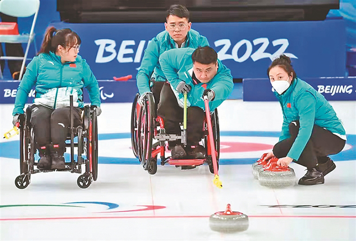 北京冬殘奧會(huì)的第一天,中國輪椅冰壺隊(duì)開局不利,先后不敵加拿大隊(duì)和瑞典隊(duì),壓力可想而知。之后中國隊(duì)迅速調(diào)整狀態(tài)。6日,9:3戰(zhàn)勝愛沙尼亞隊(duì),贏得循環(huán)賽首勝。7日,接連戰(zhàn)勝韓國隊(duì)和瑞士隊(duì),以三勝兩負(fù)的戰(zhàn)績與拉脫維亞隊(duì)并列第三名。11日,中國隊(duì)對陣加拿大隊(duì)爭奪決賽名額。12日,輪椅冰壺決賽中,中國隊(duì)在前四局1:2落后瑞典隊(duì)的情況下改變戰(zhàn)術(shù),利用對手失誤成功拿到4分。最終,中國輪椅冰壺隊(duì)8:3戰(zhàn)勝瑞典奪得冠軍。
