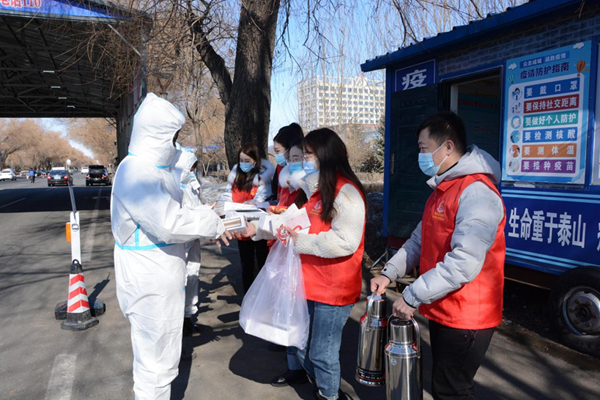 樺川縣稅務(wù)局組成青年志愿服務(wù)隊(duì),攜帶保溫杯、熱水、水果等慰問品,深入樺川縣入口防疫卡點(diǎn),慰問堅(jiān)守在疫情防控一線的工作人員。青年志愿者們詳細(xì)詢問卡點(diǎn)防寒保暖、飲食安排等情況,對他們舍小家為大家、無私奉獻(xiàn)、敢于擔(dān)當(dāng)?shù)木窠o予高度贊揚(yáng),向他們送去關(guān)心和問候,叮囑他們做好自身防護(hù),合理安排休息時(shí)間。