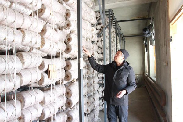 靈芝養(yǎng)殖戶在菌包培養(yǎng)室內(nèi)查看培養(yǎng)室的溫度、濕度是否適宜靈芝生長(zhǎng)(趙明 攝)