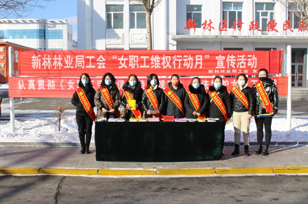新林林業(yè)局工會(huì)女職工維權(quán)志愿者設(shè)置宣傳臺(tái)接受女職工維權(quán)咨詢(冀威威 攝)