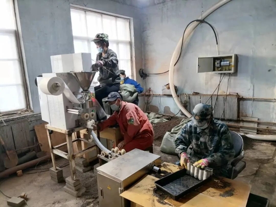 根據(jù)設(shè)備操作指南,呼中林業(yè)局中心苗圃從3月中旬便開始著手生產(chǎn)作業(yè),工作中他們采用機(jī)械與人工相結(jié)合的方式,每天加班加點、技術(shù)人員跟班作業(yè)。同時,為加快生產(chǎn)進(jìn)度,他們還租用一臺挖掘機(jī),將凍土原料運送到圃內(nèi)大棚,并用燒爐解凍烘干的方法,與珍珠巖肥料按一定比例混合成基制,再用機(jī)器灌裝成型,每日生產(chǎn)可達(dá)8000余個。截至目前,已完成輕基質(zhì)容器育苗杯生產(chǎn)10萬+。