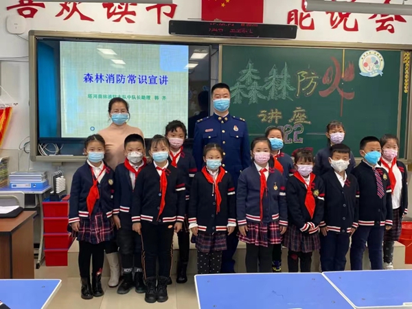 活動中,消防指戰(zhàn)員與同學們互動頻繁,通過問答的形式,向師生講解了森林防火的基本常識、野外用火的注意事項、如何逃生自救以及常見的自然災害避險等知識。播放了《關注森林防火,守望綠水青山》《小小煙蒂危害大》等森林防火宣傳片。