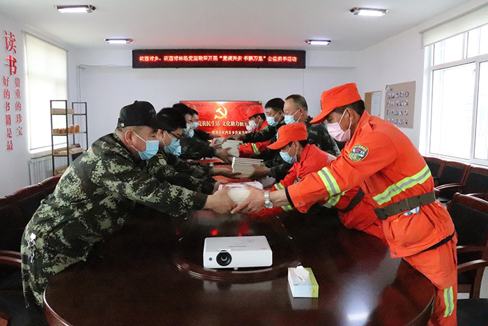 活動中,觀摩了依西肯鄉(xiāng)社區(qū)文化站的文化建設(shè)、藝術(shù)傳承,并在圖書室觀看了依西肯農(nóng)家書屋宣傳片。在黨員活動室內(nèi),黨員為撲火隊員挑選了黨政理論學(xué)習(xí)、森林防火專業(yè)知識、黨史、法律、生活、科學(xué)、小說等不同種類書籍。