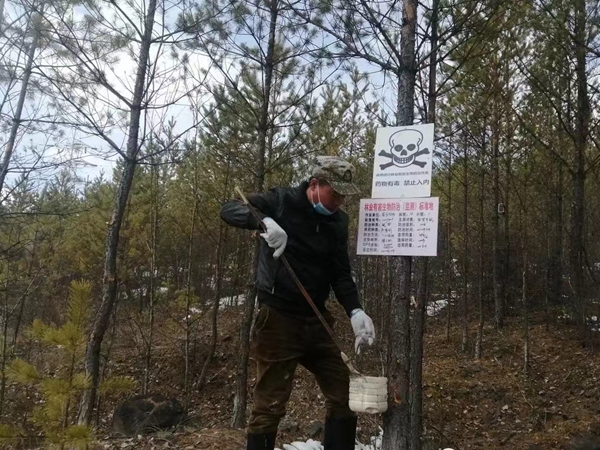 采取科學(xué)有效的防治方法,根據(jù)不同區(qū)域、不同特點投放不孕劑和涂抹防啃劑進(jìn)行防治。為防止人畜中毒,提前張貼林場鼠害防治公告、在防治區(qū)內(nèi)樹立警示標(biāo)牌,避免人員、牲畜進(jìn)入投放鼠藥區(qū)域。