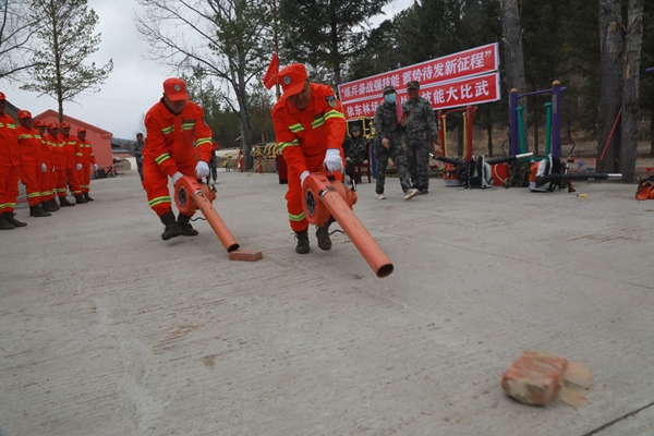 阿木爾林業(yè)局依東林場專業(yè)撲火隊員在進行拆解安裝風(fēng)力滅火機比賽(王力 攝)