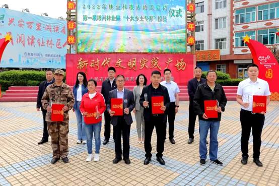 出席活動(dòng)的林業(yè)局領(lǐng)導(dǎo)為塔河林業(yè)局“十大鄉(xiāng)土專家”頒發(fā)了授任證書和獎(jiǎng)杯。