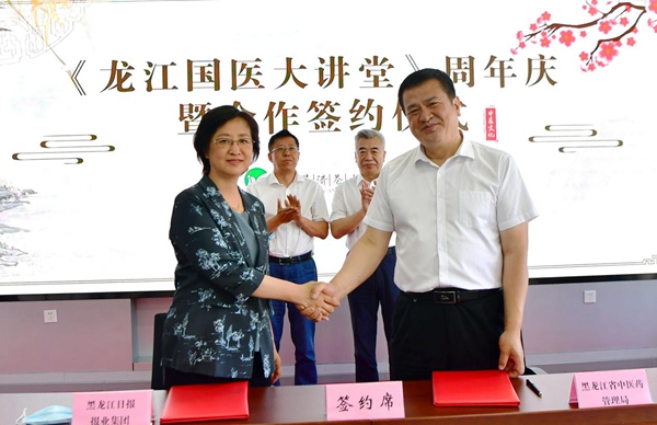 活動(dòng)現(xiàn)場(chǎng),黑龍江日?qǐng)?bào)報(bào)業(yè)集團(tuán)分別與黑龍江省中醫(yī)藥管理局、黑龍江省中醫(yī)藥科學(xué)院進(jìn)行了合作簽約。省中醫(yī)藥管理局黨組書記、局長(zhǎng)張曉峰說:黑龍江日?qǐng)?bào)報(bào)業(yè)集團(tuán)具有廣泛的社會(huì)影響力,我們將以框架協(xié)議的簽署為契機(jī),在中醫(yī)藥文化知識(shí)宣傳普及、中醫(yī)藥產(chǎn)業(yè)宣傳推介方面進(jìn)一步加深合作。省中醫(yī)藥科學(xué)院黨委書記、院長(zhǎng)陳宏在現(xiàn)場(chǎng)說:《龍江國(guó)醫(yī)大講堂》已成為我省中醫(yī)藥文化宣傳戰(zhàn)線上的知名品牌,我們將在多領(lǐng)域開展更深層次、更高水平的合作,為我省中醫(yī)藥事業(yè)跨越式發(fā)展助推加力。