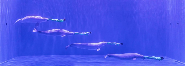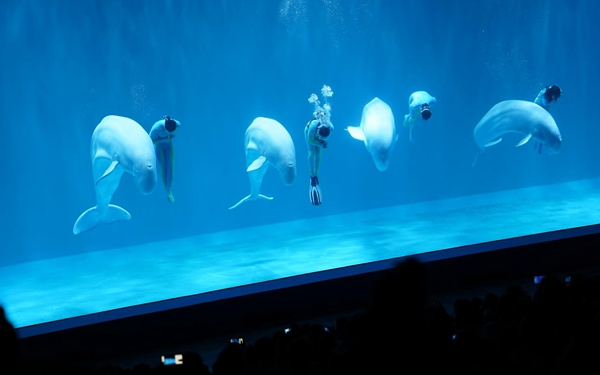 極地公園工作人員介紹,四鯨、四人共同表演難度很大,這樣一場(chǎng)震撼無(wú)比的表演,離不開(kāi)白鯨寶貝們的高智商和高情商,以及白鯨和馴養(yǎng)師朝夕相處的和諧和默契。這場(chǎng)四鯨秀不僅內(nèi)容新,這四只白鯨也是第一次“組團(tuán)”,它們沒(méi)有任何緊張和怯場(chǎng),超具藝術(shù)家風(fēng)范,最后還不忘集體謝幕,贏得了游客接連不斷的喝彩和掌聲。為了打造世界最好的白鯨表演,哈爾濱極地公園的白鯨劇場(chǎng)從場(chǎng)館設(shè)計(jì)、音樂(lè)編排、燈光音響設(shè)備,到巨型展窗等均做到國(guó)內(nèi)頂級(jí),只為全方位打造世界最好的白鯨秀。