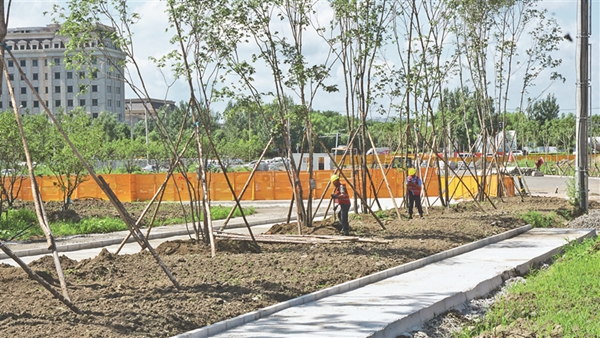 黑龍江日報(bào)訊(王藝凝 黑龍江日報(bào)全媒體記者薛婧 黑龍江日報(bào)全媒體見習(xí)記者董廣碩)近日,記者在哈爾濱新區(qū)的國貿(mào)中央廣場項(xiàng)目(一期)建設(shè)現(xiàn)場看到,工人們頂著炎炎烈日運(yùn)送建筑材料、栽種路旁的各式綠植。經(jīng)過近一年的加緊施工,廣場已初具規(guī)模。據(jù)該項(xiàng)目負(fù)責(zé)人介紹,為盡早豐富居民的文化生活,工作人員正搶抓工期,預(yù)計(jì)比原計(jì)劃提前一年完成建設(shè),力爭今年年底前完工。