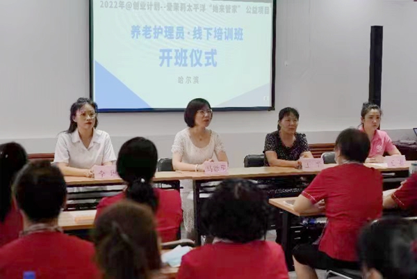 黑龍江經(jīng)濟(jì)網(wǎng)訊(王巖)為進(jìn)一步培養(yǎng)養(yǎng)老護(hù)老專業(yè)人才,提升養(yǎng)老護(hù)理員隊(duì)伍職業(yè)化、專業(yè)化水平,7月26日,由中國(guó)婦女發(fā)展基金會(huì)與愛(ài)茉莉太平洋發(fā)起,哈爾濱市婦聯(lián)指導(dǎo),黑龍江龍妹職業(yè)技能培訓(xùn)學(xué)校承辦的“愛(ài)茉莉太平洋‘她來(lái)管家’女性賦能公益項(xiàng)目”養(yǎng)老護(hù)理員線下培訓(xùn)班正式開(kāi)班,來(lái)自各區(qū)縣社區(qū)的34名學(xué)員參加了開(kāi)班儀式。