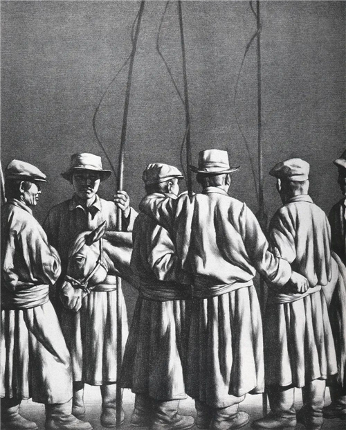 躺著的男人與遠(yuǎn)去的白馬 62×50.5cm 石版畫 1989年