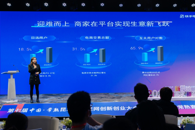 10月28日,由常熟市人民政府主辦,常熟市商務(wù)局和快手承辦的第七屆中國·常熟昆承湖互聯(lián)網(wǎng)創(chuàng)新創(chuàng)業(yè)大會(huì)在江蘇常熟舉行??焓值谝粚贸J熘辈ス?jié)也在會(huì)上同步啟動(dòng),會(huì)上,快手電商宣布未來將在常熟扶持10個(gè)千萬GMV新商家和100個(gè)百萬GMV新主播。