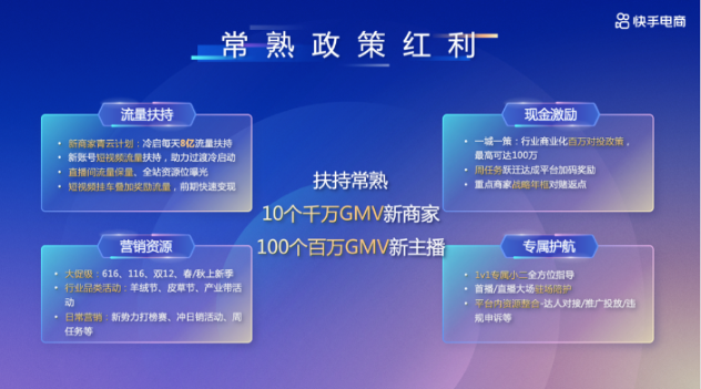 在流量扶持方面,新手常熟商家可享受“青云計(jì)劃”每天8億流量扶持,還有短視頻流量扶持、直播間流量保量、全站資源位曝光、短視頻掛車疊加獎(jiǎng)勵(lì)等;在營銷資源方面,快手電商打造每月高頻的營銷場景,包括大促、節(jié)日、行業(yè)品類活動(dòng)、寵粉節(jié)等,并為常熟商家提供活動(dòng)補(bǔ)貼,激活品牌動(dòng)銷;此外還有最高價(jià)值100萬的商業(yè)化對投政策、周任務(wù)躍遷達(dá)成平臺(tái)加碼獎(jiǎng)勵(lì)等現(xiàn)金激勵(lì),以及1V1專屬小二全方位指導(dǎo)等專屬護(hù)航。