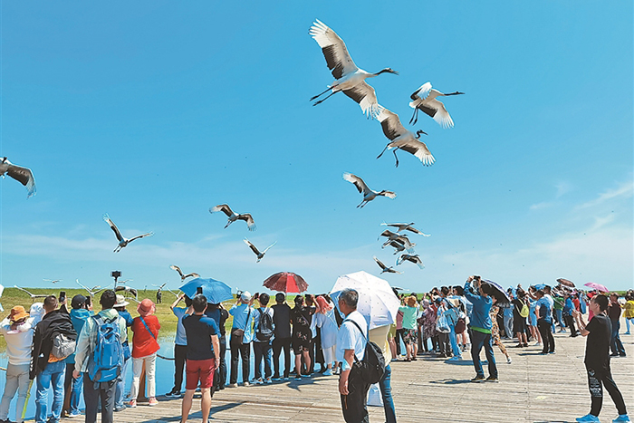 除了打冰球、吃烤肉,每支參賽球隊(duì)都會(huì)不約而同地去扎龍自然保護(hù)區(qū)賞鶴,同時(shí)奧悅水世界、龍沙動(dòng)植物園、鶴城公園等旅游景點(diǎn)的游客接待量也激增。小冰球,讓鶴城旅游變得火熱。